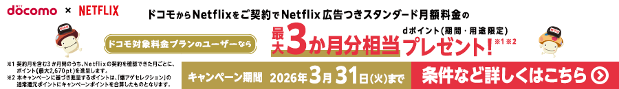 ドコモ×Netflixご登録サイトへ順番にご案内しております。